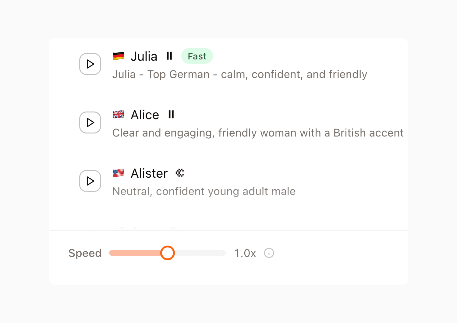 Custom voice clones allow you to create a unique AI voice that matches a specific person or style. You can upload voice samples to train a personalized voice for your avatar. This feature is available on Professional and Enterprise plans.